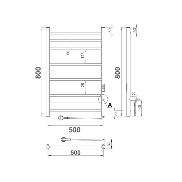 Полотенцесушитель электрический имеет встроенный терморегулятор нагрева, у которого три режима: 40, 45, 50 градусов и таймер на отключение через 2, 4, 6 часов.