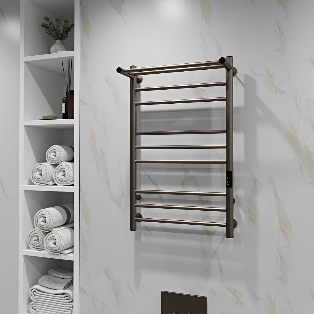 Полотенцесушитель электрический INDIGO Trinity в цвете для эстетичного дополнения вашей ванной комнаты в стиле loft или темных тонах.