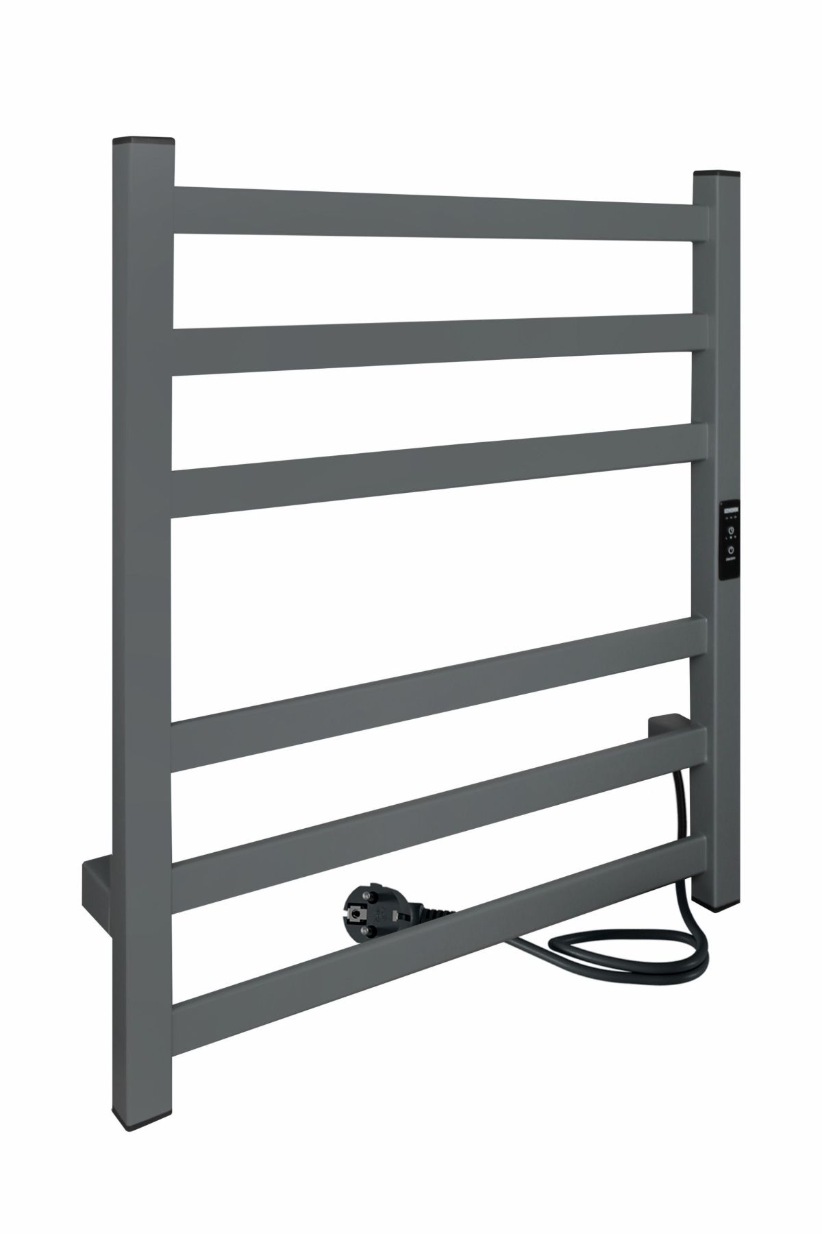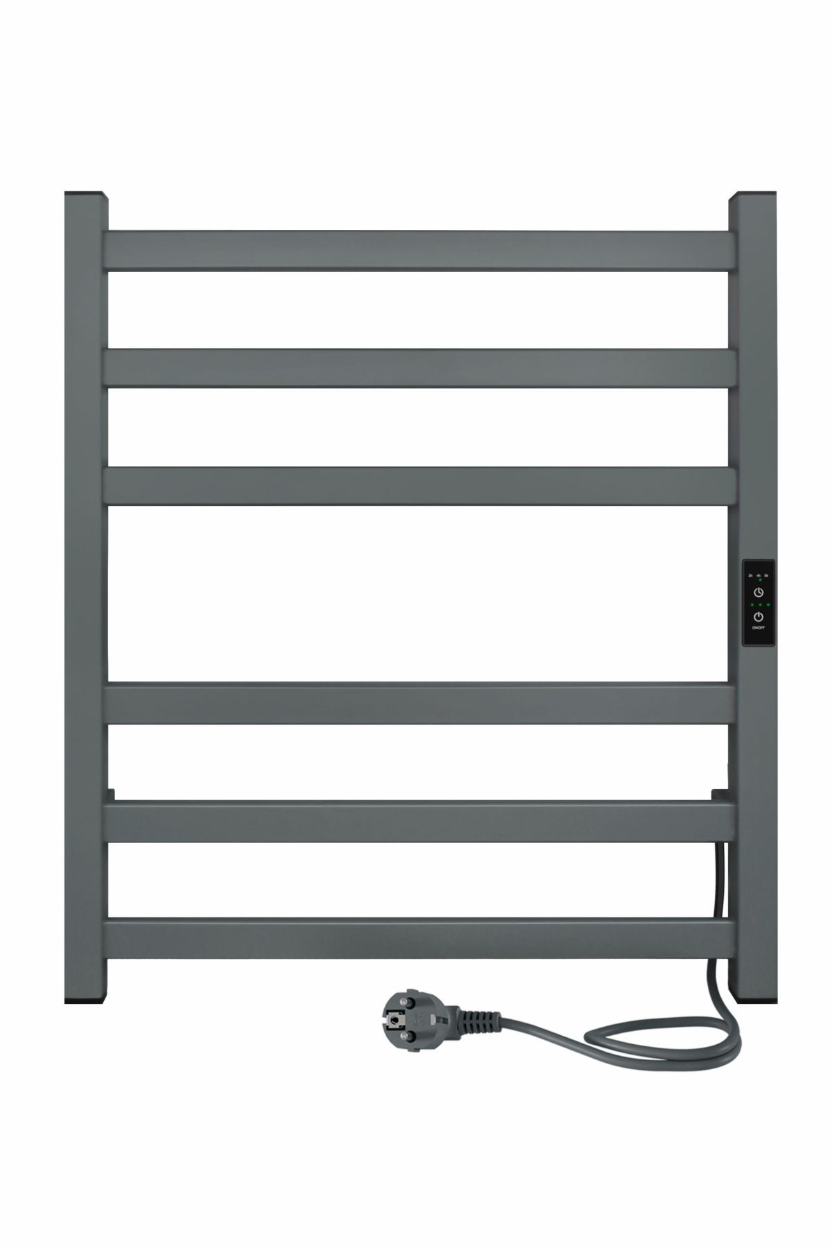 Полотенцесушитель электрический INDIGO Oktava Slim 3 в сером матовом оттенке. Имеет встроенный терморегулятор нагрева с тремя режимами температуры: 40, 45, 50 градусов и таймером на отключение через 2, 4, 6 часов. Длина провода до 1,1 метра. Универсальность изделия предусматривает подключение через провод или скрытое подключение без покупки дополнительного переходника.