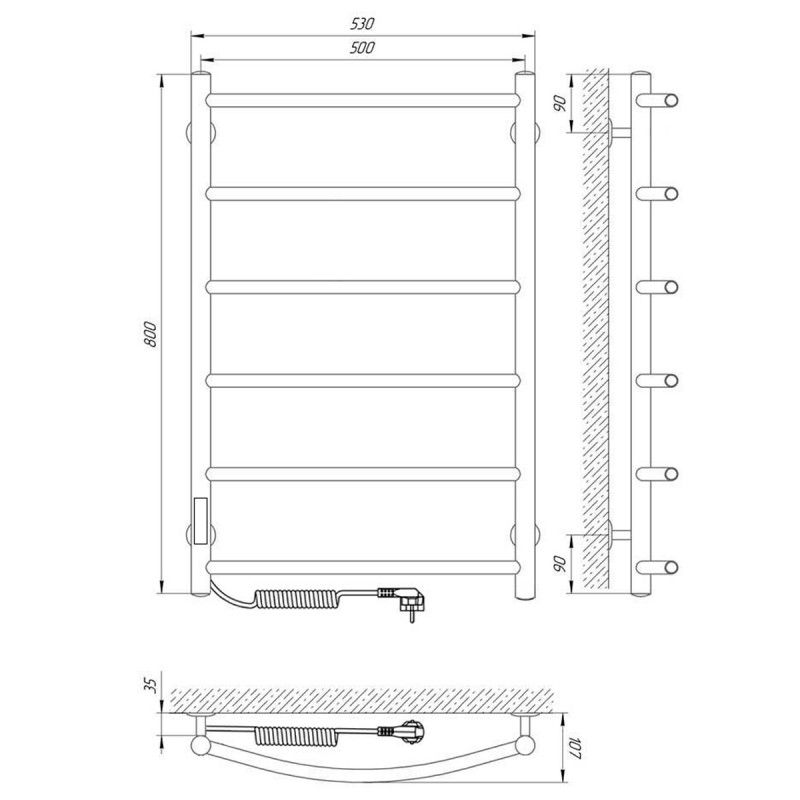 Модель: КлассикКод товара: 73207392Материал: сталь нержавеющая AISI304Диаметры и толщина: стойка Ø30, толщина 1,5 мм; перемычка Ø20, толщина 1 ммРегулятор: на стойкеТерморегулятор: даВозможность скрытого монтажа: даРазмещение шнура: справа (Также есть исполнение с левым подключением)Температура поверхности изделия*: 50±5°CНапряжение питания: 220 ВВес: 5,86 кгКомплектация: