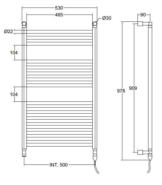 Немодульный стационарный полотенцесушитель из латуни с межосевым расстоянием 500 мм с радиатором.