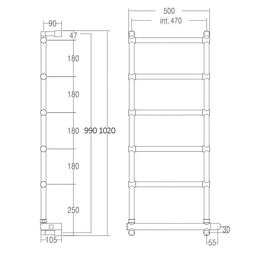 Полотенцесушитель электрический Margaroli Sole 512/6/530 Switch Black Matt DB 99x53 см чёрный матовый купить