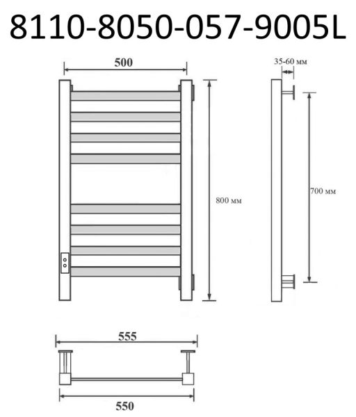 Полотенцесушитель электрический Маргроид В81/10 Р80*50 чёрный матовый 8110-8050-1081-9005L