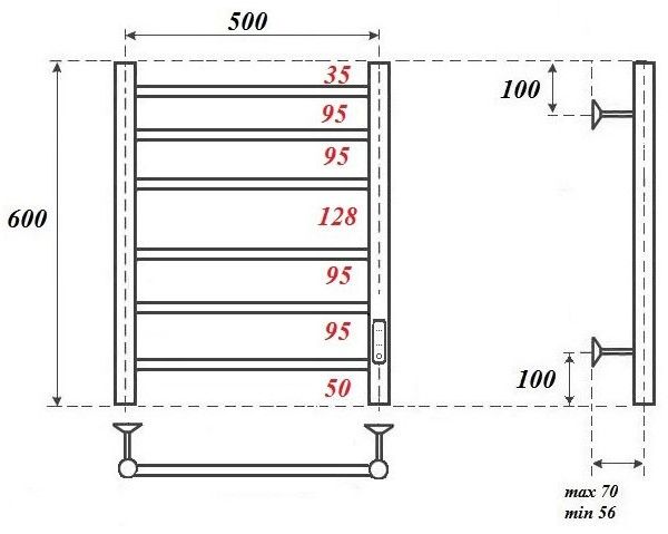 При этом подключение к электросети универсальное - как справа, так и слева.Электрические полотенцесушители с греющим кабелем Аврора в цвете бронза