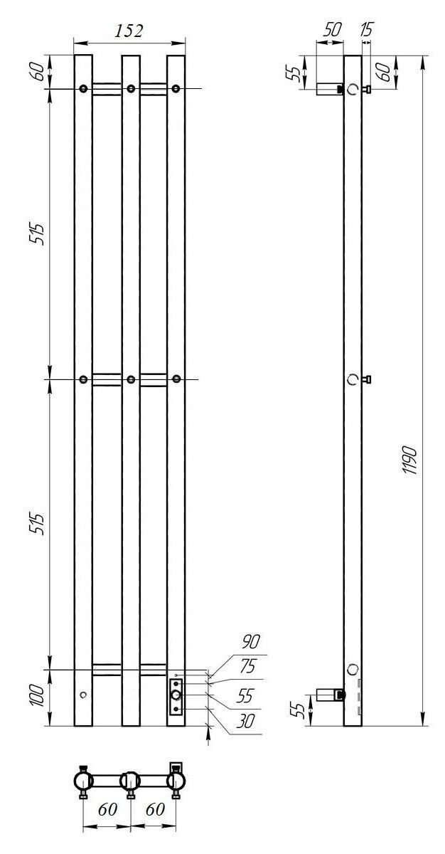 Полотенцесушитель электрический Point Деметра PN12822 П3 120x1200 диммер справа, хром Подробнее
