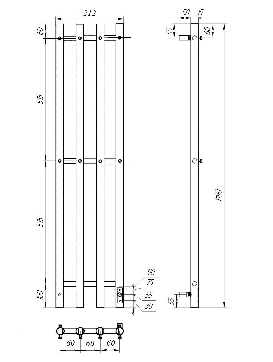 Полотенцесушитель электрический Point Деметра PN12832B П3 18x120см диммер справа чёрный