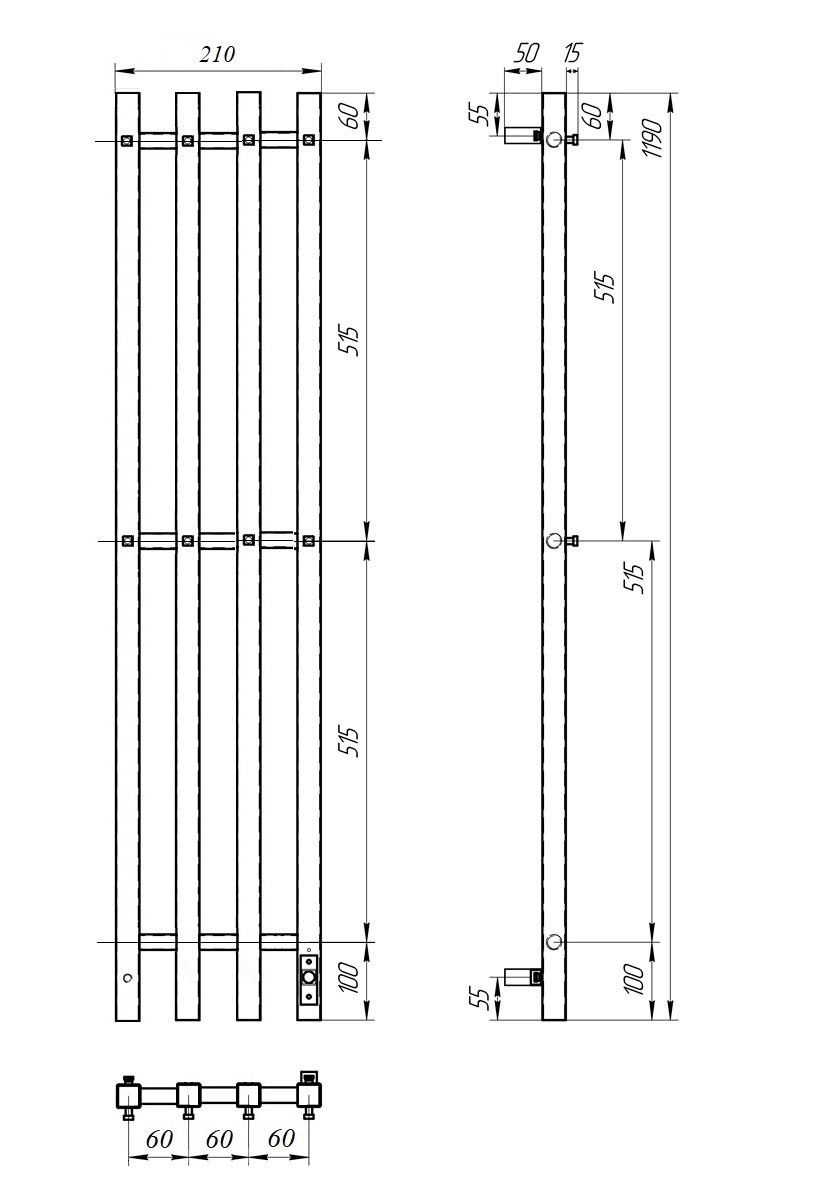 Полотенцесушитель электрический Point Гермес PN13832B П3 18x120см диммер справа чёрный купить