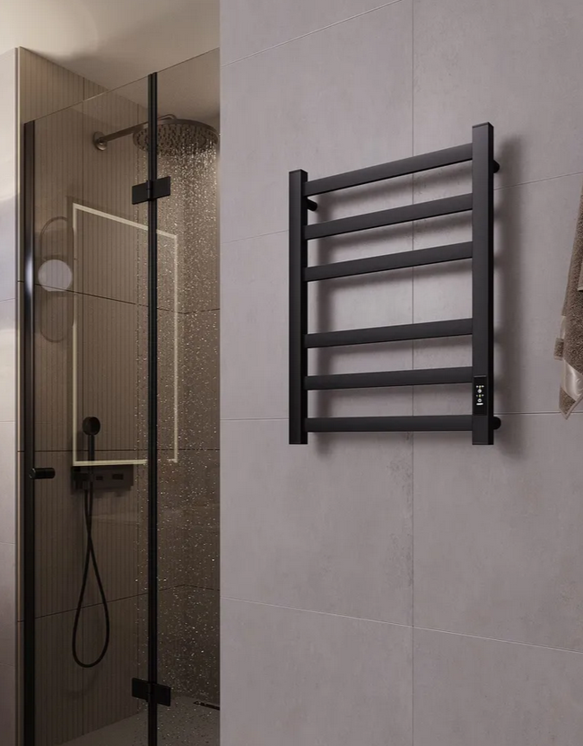 Электрический полотенцесушитель Point Меркурий П6 400x600 – это стильное и функциональное устройство для вашей ванной комнаты. Черный цвет придает ему элегантный и современный вид, который отлично впишется в любой интерьер. Высота полотенцесушителя 60 см, а ширина всего 43 см, что позволяет легко разместить его даже в небольших помещениях. У этого сушителя полотенец 6 горизонтальных перекладин на которых можно разместить большое количество полотенец и любых вещей которым необходима сушка.Этот полотенцесушитель оснащен терморегулятором, который позволяет легко регулировать температуру нагрева в зависимости от ваших предпочтений. Электронный термостат обеспечивает точное поддержание заданной температуры, что делает использование устройства максимально удобным. Встроенный таймер включается по желанию, есть три времени работы 2, 4 или 6 часов. Таймер позволяет эффективно экономить электроэнергию, а регулярное использование полотенцесушителя в ванной эффективно устраняет влажность и препятствует развитию в ванной комнате болезнетворных бактерий и грибков.Изготовленный из стали и окрашенный стойкой матовой краской, этот полотенцесушитель обеспечивает надежность и долговечность. Нагревательный элемент - греющий кабель, эффективно сушит полотенца и полностью безопасен в использовании, обеспечивая комфорт и уют в ванной комнате.Сушилка для полотенец Point Меркурий П6 400x600 имеет вертикальное исполнение, что позволяет экономить пространство на стене. Подключение универсальное, выводы есть как на левой так и на правой стойке. Подключить можно так же двумя способами. Скрытое подключение обеспечивает эстетичный внешний вид при котором нет видимых проводов. В комплекте так же есть кабель-вилка длиной 100 см для обычного подключения через розетку.Обеспечьте себе комфорт и уют в ванной комнате с электрическим полотенцесушителем Point Меркурий П6 400x600. Наслаждайтесь теплыми полотенцами и уютной атмосферой каждый день!
