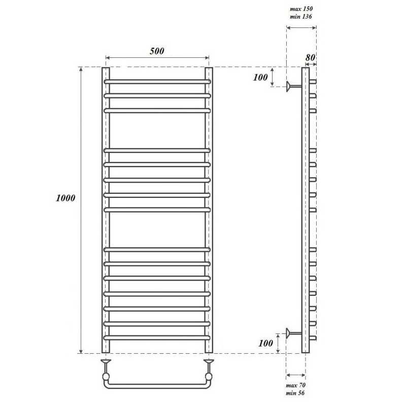Полотенцесушитель электрический Point PN09150SE П15 500x1000 левый/правый, хром