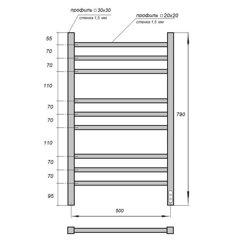 Полотенцесушитель электрический Point Вега PN71858B 50x80см П9 чёрный