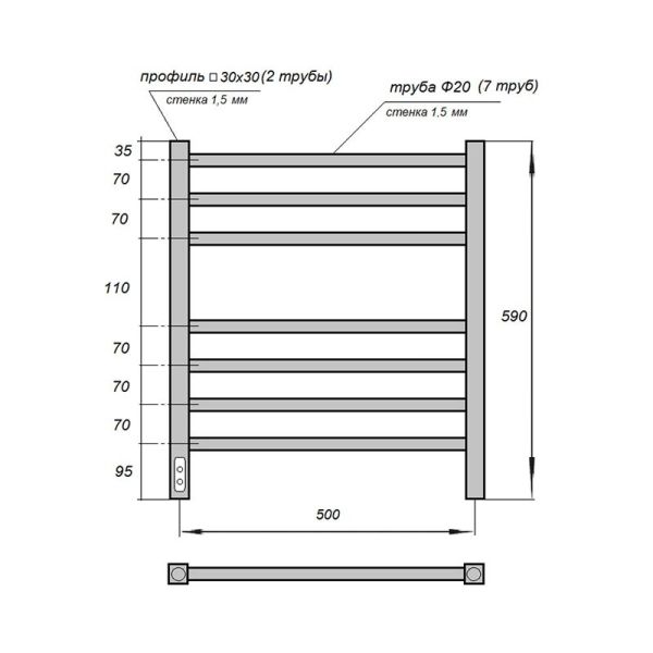 Полотенцесушитель электрический Point Веста PN70756B 50x60см П7 чёрный