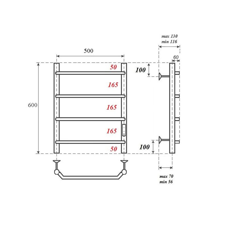 Полотенцесушитель электрический Point PN06856 П4 500x600 диммер справа, хромКомплектация: