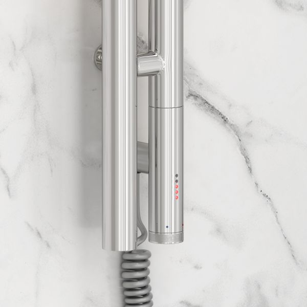 Полотенцесушитель имеет степень защиты IP54, что гарантирует безопасность использования в условиях повышенной влажности. Устройство поставляется со скрытым подключением и кабелем длиной 1,5 м, расположение блока управления и провода находится справа. Габариты прибора составляют 1200 мм в высоту и 85 мм в ширину, благодаря чему он хорошо впишется в пространство любой ванной комнаты.