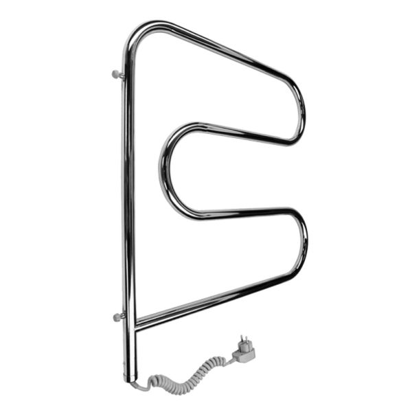 поворотное крепления к стене 2 шт. Электрический полотенцесушитель из нержавеющей стали. Полированный. С кнопкой включения на сетевой вилке. Напряжение 220В