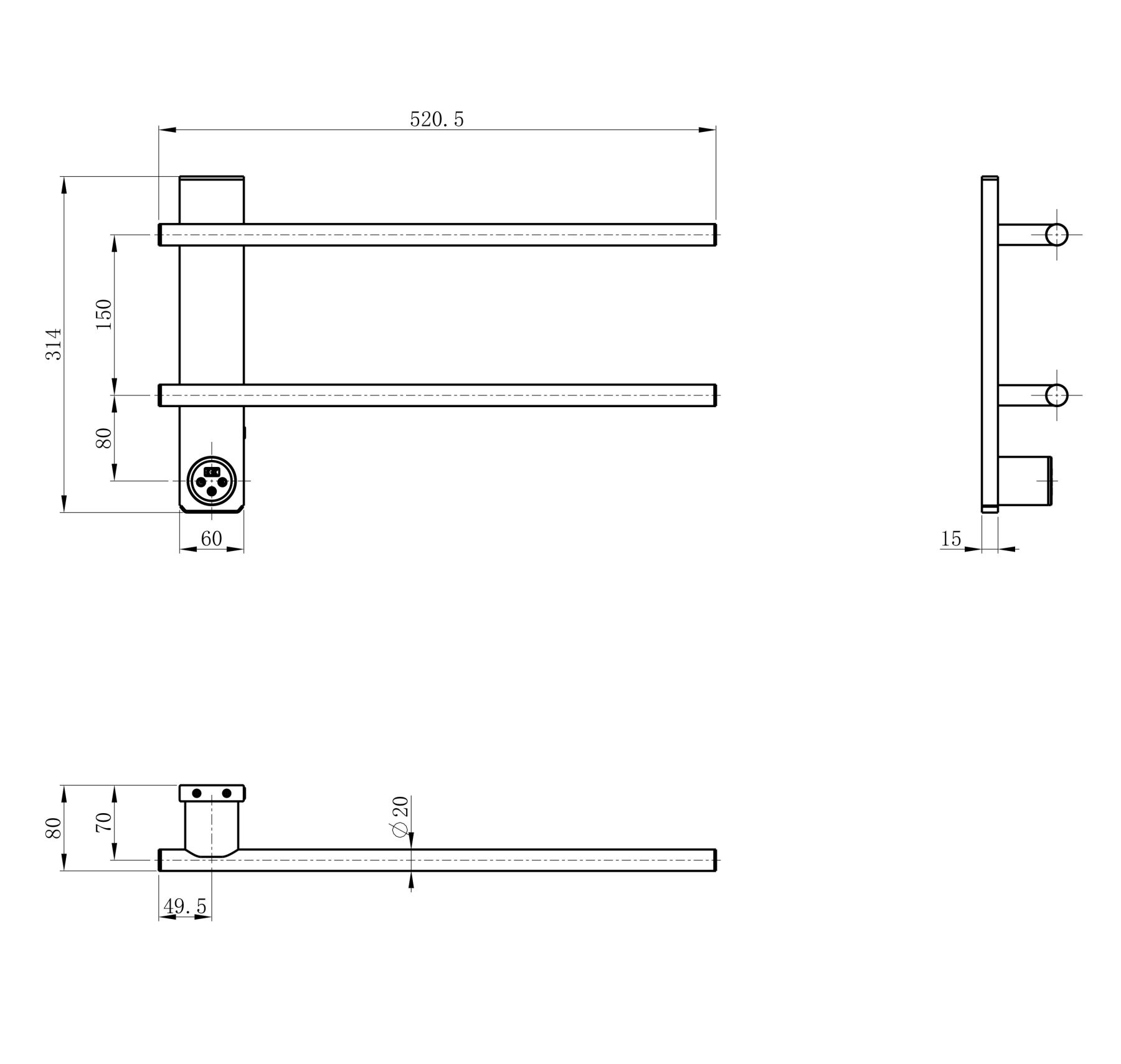 Полотенцесушитель электрический WONZON & WOGHAND NÜRNBERG, Черный матовый (WW-AL342-MB)