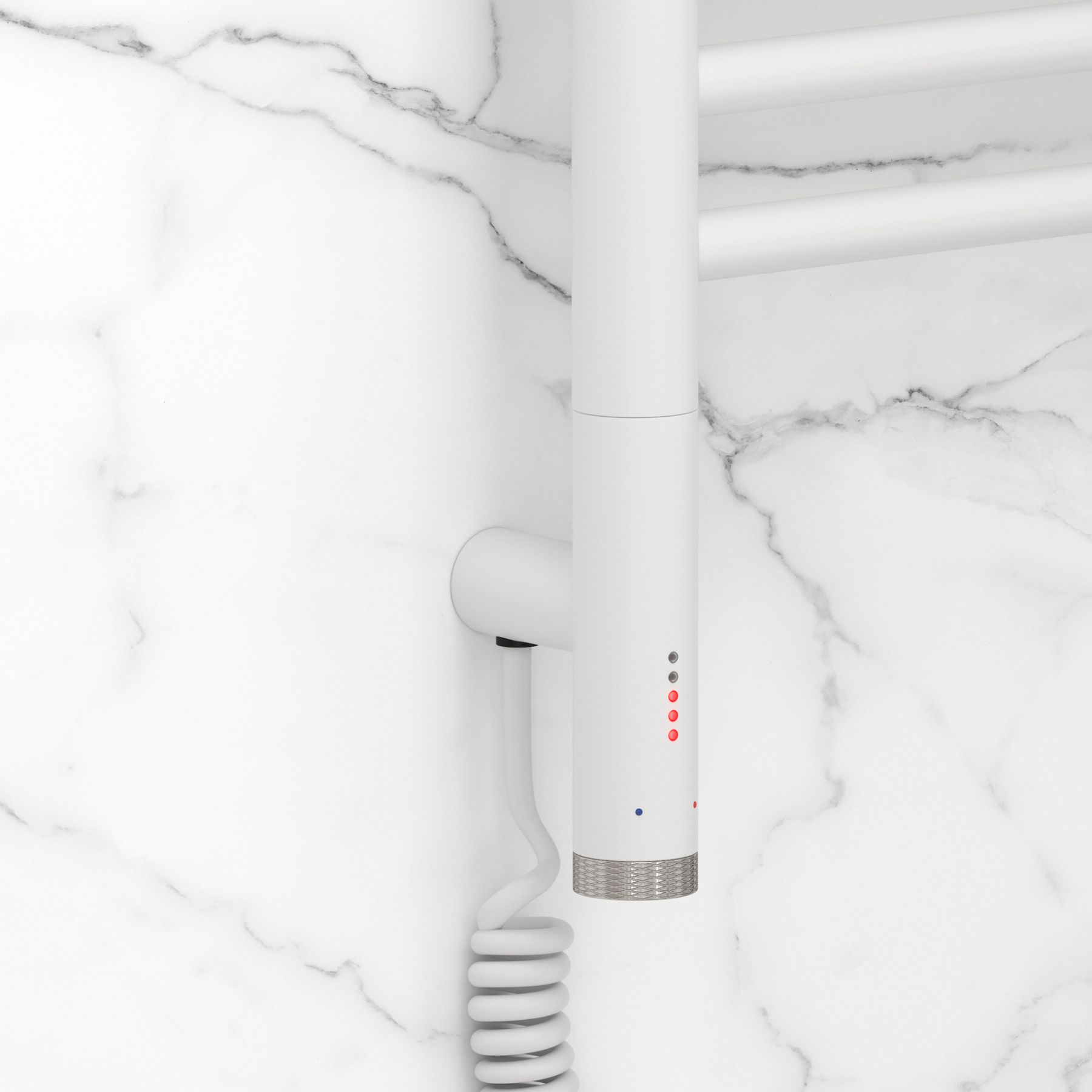 Полотенцесушитель Сунержа Богема 3.1 30-6004-6040 прямой 600х400 МЭМ левый, белый — это современный электрический прибор, созданный для эффективного обогрева ванной комнаты и удобной сушки полотенец. Он выполнен из нержавеющей стали AISI 304 L с матовым белым покрытием, которое обеспечивает надежную защиту от коррозии и эстетичный внешний вид на долгие годы.