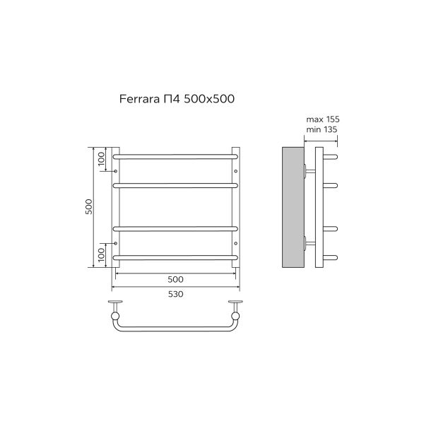 Полотенцесушитель водяной AZARIO FERRARA AZ09155 500/500 4 секций, нижнее/диагональное подключение, 1/2, хром