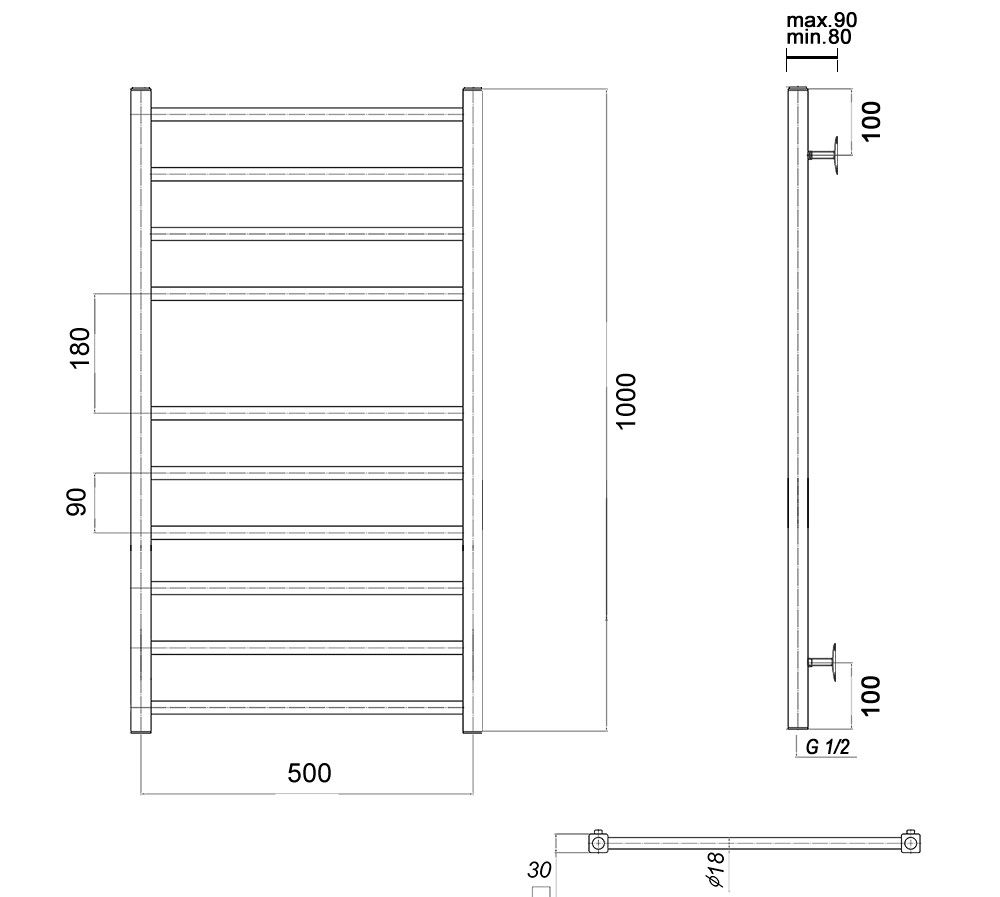 М/о расстояние (межосевое расстояние): 500Количество перекладин: 10Коллекция: КубаТип: водяныеЦвет: хромШирина (мм): 530Высота (мм): 1000Глубина (мм): 90-80Вес: 9,2Объем: 0,0477Страна: РоссияГарантия: 10 лет