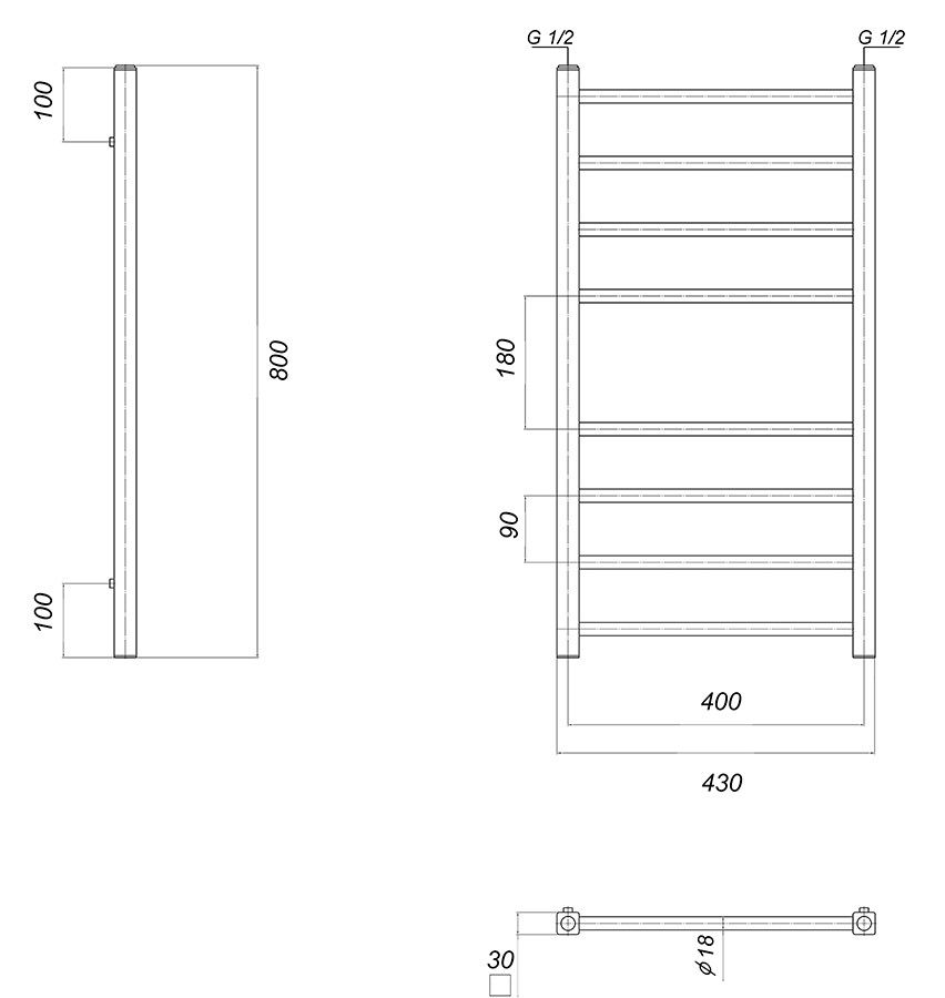 М/о расстояние (межосевое расстояние): 400Количество перекладин: 8Коллекция: КубаТип: водяныеЦвет: хромШирина (мм): 430Высота (мм): 800Глубина (мм): 90-80Вес: 8,1Объем: 0,0381Страна: РоссияГарантия: 10 лет
