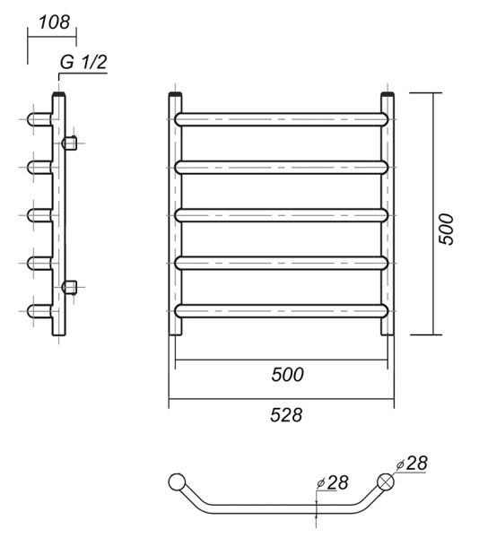 Водяной полотенцесушитель Domoterm П5 50x50 АБР 52.8 выполняет не только свое прямое предназначение - сушка полотенец, но и обогревает ванную комнату до комфортной температуры.