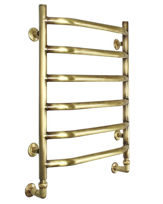 Водяной полотенцесушитель из латуни марки Л59.Цвет «Античная бронза».Труба цельнотянутая.Вертикальные стойки имеют диаметр 28 мм., горизонтальные перекладины выполнены из трубы диаметром 28 мм.Подключение к ГВС нижнее, резьба внутренняя, 1/2".Поставляется с комплектом фитингов для подключения к воде