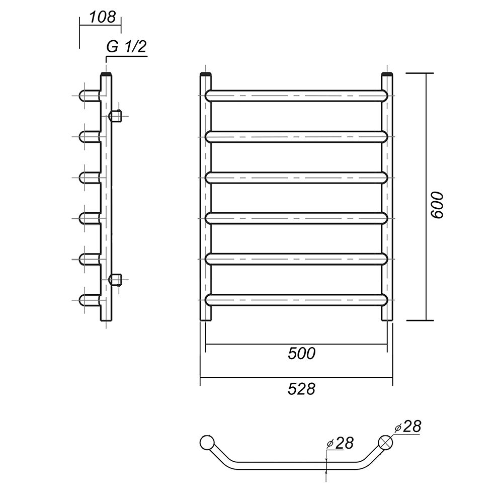 Полотенцесушитель водяной Domoterm Лаура Плюс П6 500x600 АБР бронза