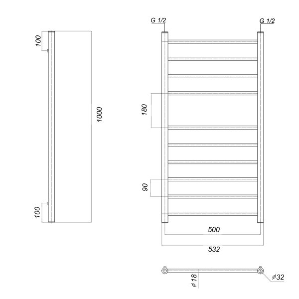 М/о расстояние (межосевое расстояние): 500Количество перекладин: 10Коллекция: МедеяТип: водяныеЦвет: золотоШирина (мм): 532Высота (мм): 1000Глубина (мм): 93-83Вес: 6,2Объем: 0,05Страна: РоссияГарантия: 10 лет