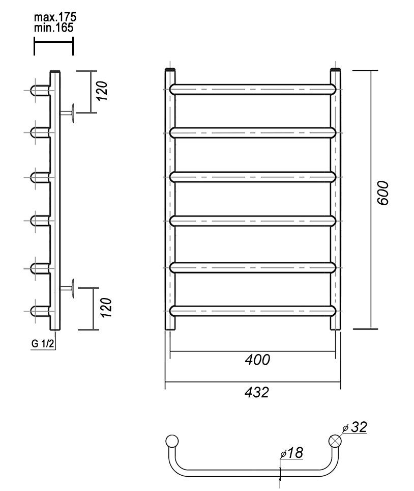 М/о расстояние (межосевое расстояние): 400Количество перекладин: 6Коллекция: СтефаноТип: водяныеЦвет: хромШирина (мм): 432Высота (мм): 600Глубина (мм): 175-165Вес: 2,5Объем: 0,05Страна: РоссияГарантия: 10 лет