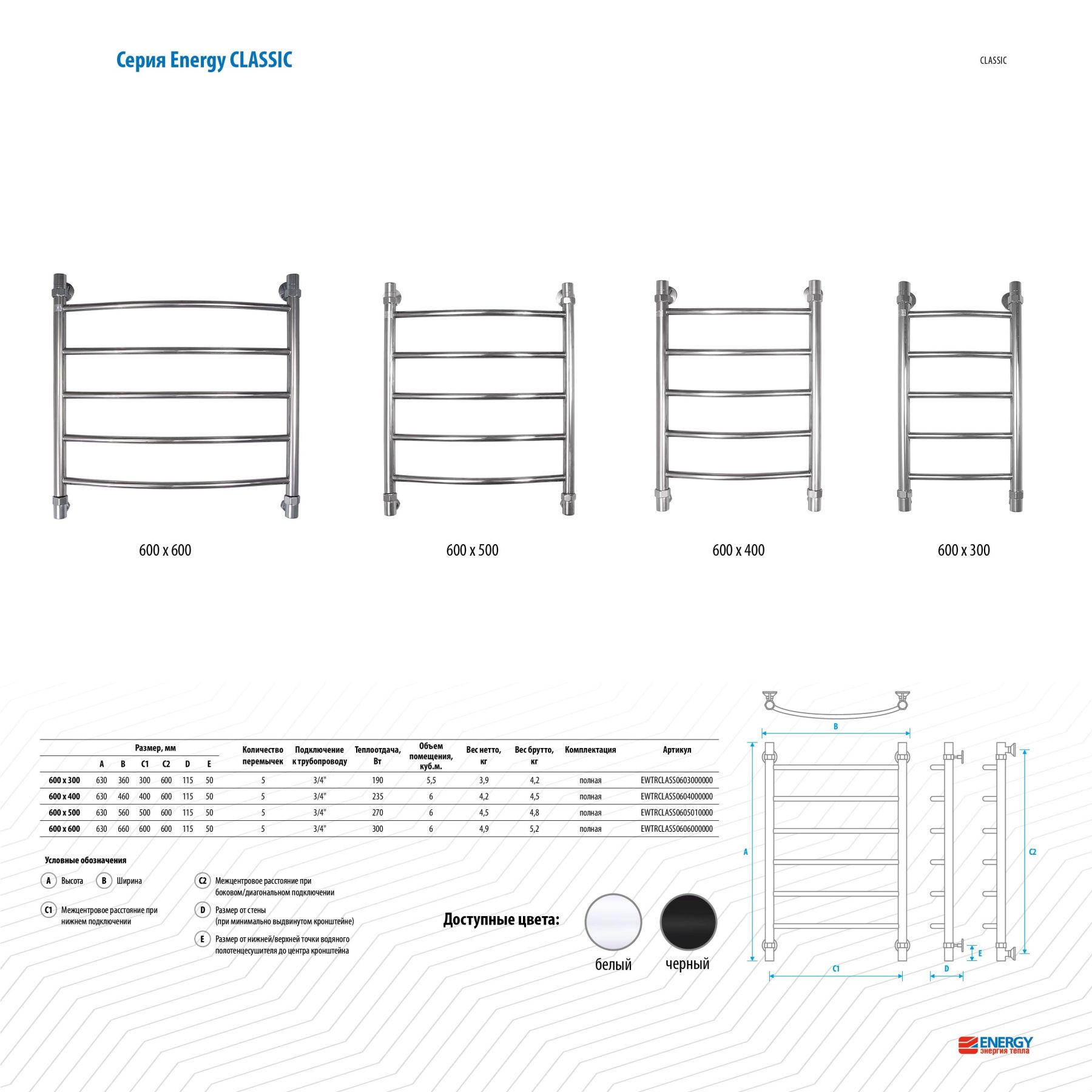 Полотенцесушитель водяной Energy Classic EWTRCLASS06040R905M 600 x 400 черный матовый купить