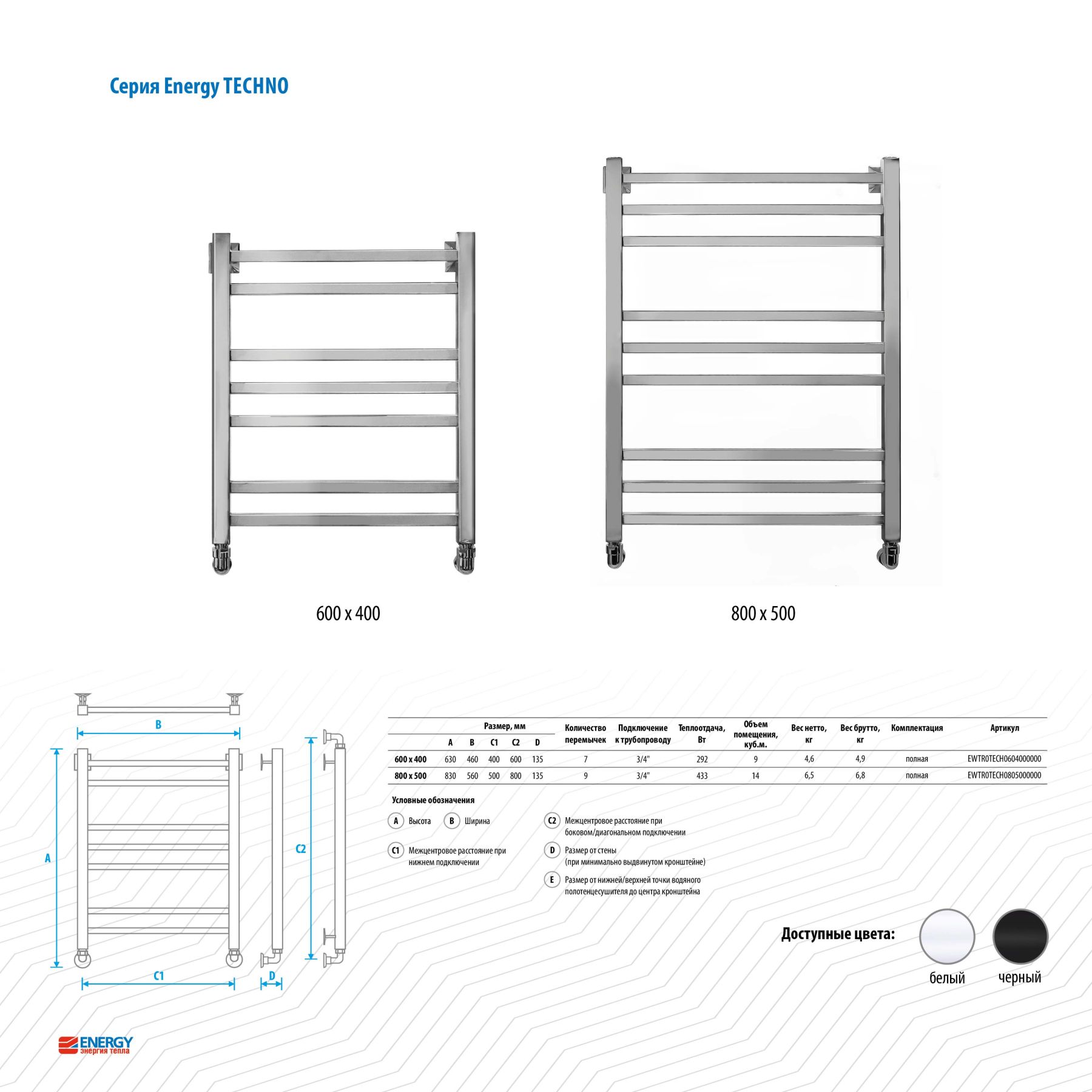 Полотенцесушитель водяной Energy Techno EWTR0TECH06040R903M 600 x 400 купить