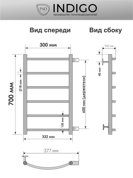 Полотенцесушитель водяной INDIGO Arc с боковым подключением в размере 700х300 (ВхШ) выбирают за ... Подробнее
