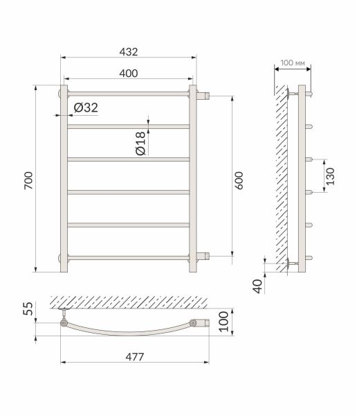 Полотенцесушитель имеет дугообразные перекладины, что очень удобно при эксплуатации.