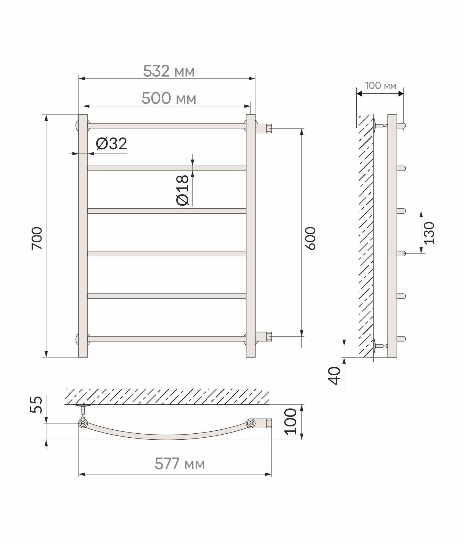 Водяной полотенцесушитель серии «Лесенка» Arc с боковым подключением – это мод... Подробнее