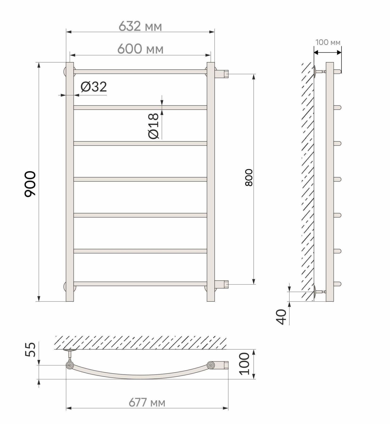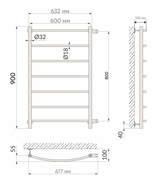 Полотенцесушитель имеет дугообразные перекладины, что очень удобно при эксплуатации.