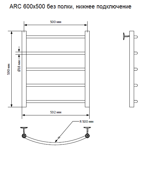 Полотенцесушитель водяной Indigo Arc LAW60-50 60x50 см хром