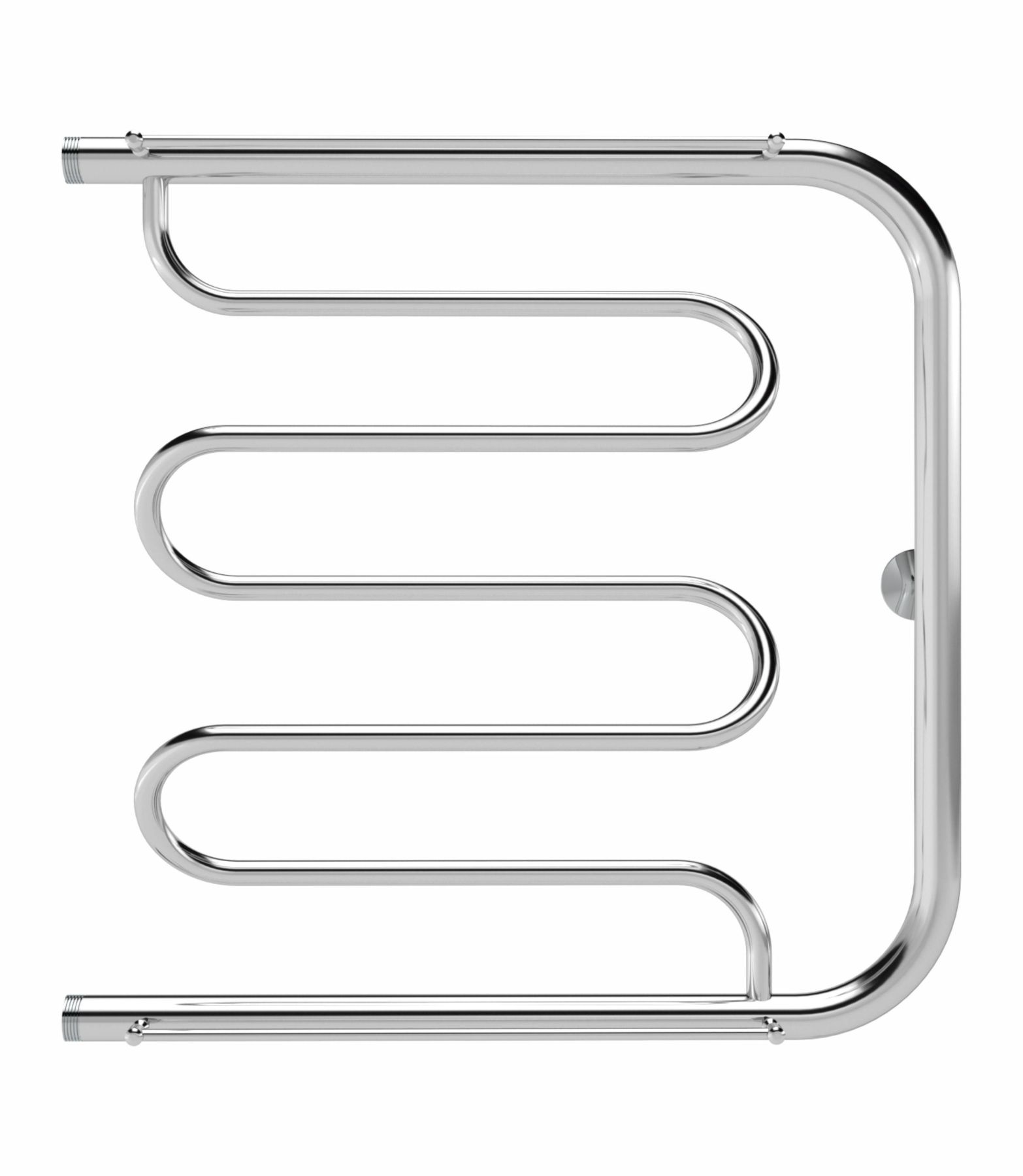 Универсальность изделия предусматривает монтаж на правую или левую сторону, а качественная металлообработка в местах соединений обеспечивает плотное прилегание прокладки. Изделие проходит тщательный этап полировки, поэтому обладает безупречным блеском. Полотенцесушитель водяной с полкой удобен тем, что на нем можно дополнительно компактно хранить и подсушивать текстильные изделия.