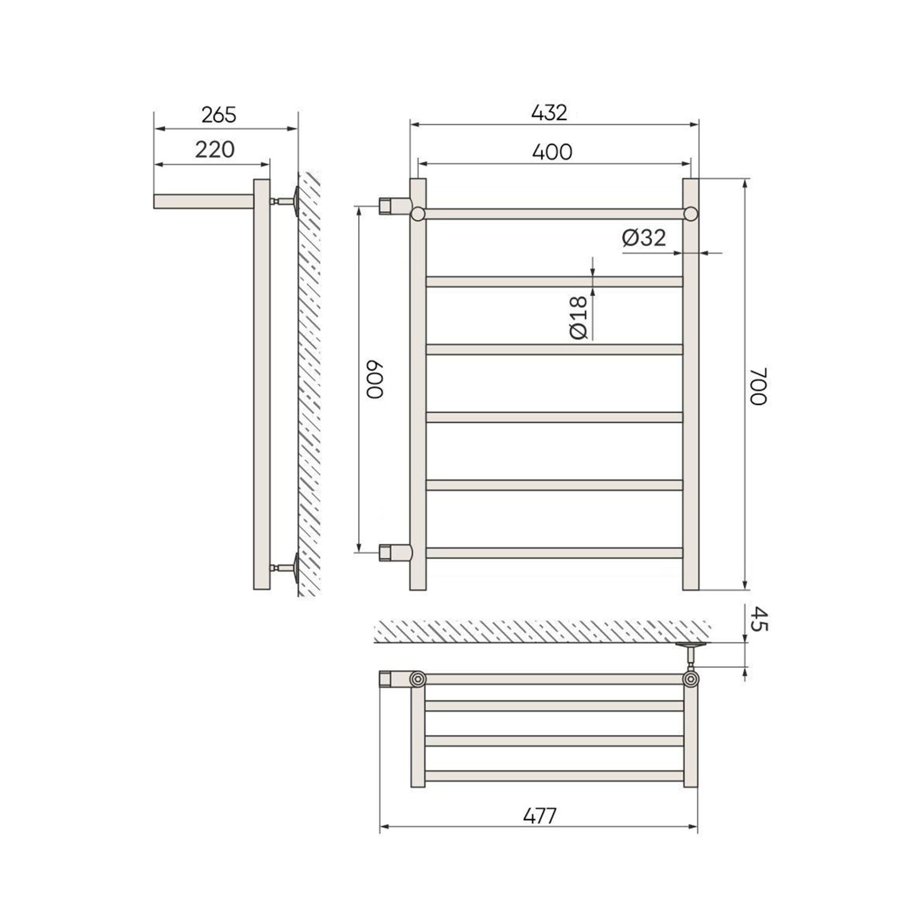 Водяной полотенцесушитель в форме Лесенки Line с полочкой – это оригинальный элемент не ... Подробнее