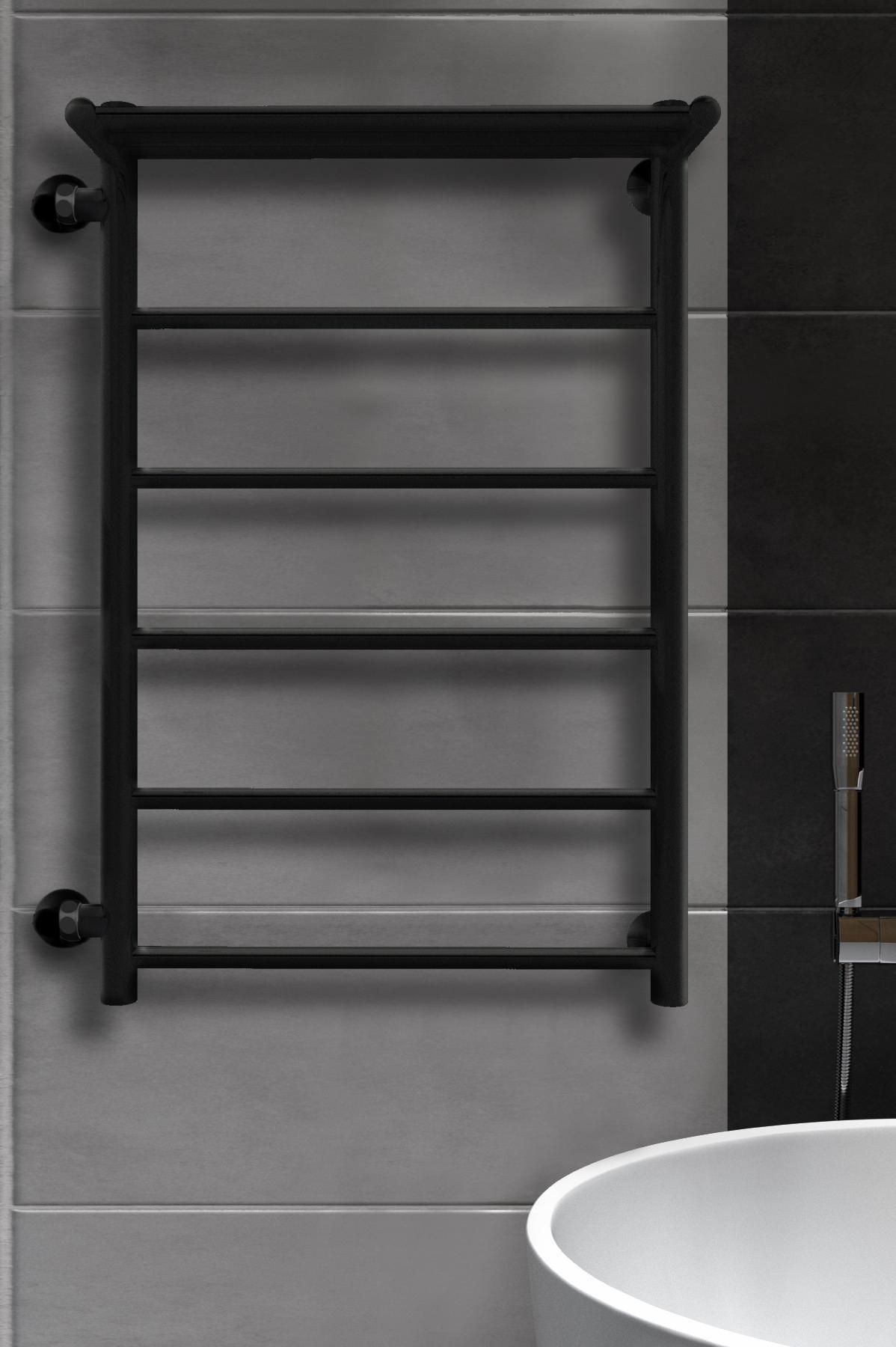 Полотенцесушитель водяной Indigo Line LLSHSW70-40BRL-б/п-60 подключение слева с полкой 70x40 см чёрный муар купить