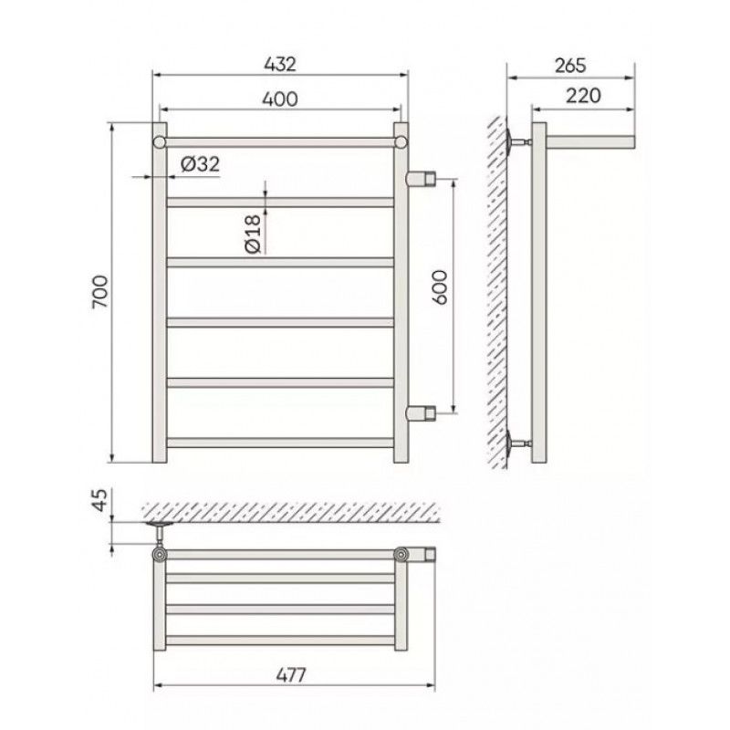 Полотенцесушитель водяной Indigo Line LLSHSW70-40L-б/п-60 подключение слева с полкой 70x40 см хром купить
