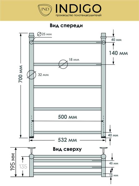 Полотенцесушитель водяной INDIGO Line с полкой в классической форме «лесенка». Функц... Подробнее