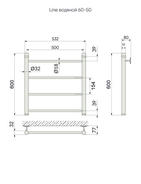 Водяной полотенцесушитель серии «Лесенка» Line. Простой, но стильный, изготовлен из высококачественной нержавеющей стали. Идеально сочетается с золотой сантехникой или интерьером в классическом стиле.