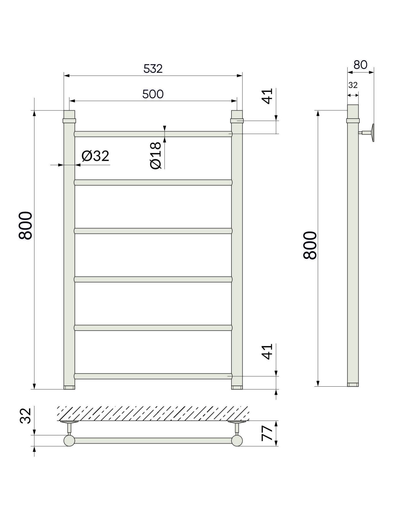 Водяной полотенцесушитель серии «Лесенка» Line. Простой, но стильный, изготовлен из высококачественной нержавеющей стали. Идеально сочетается с золотой сантехникой или интерьером в классическом стиле.