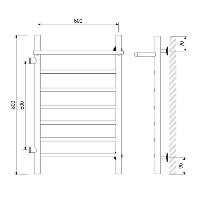 Полотенцесушитель водяной Laris Классик 73208025ЧМ левый с полкой П7 50x80см чёрный матовый