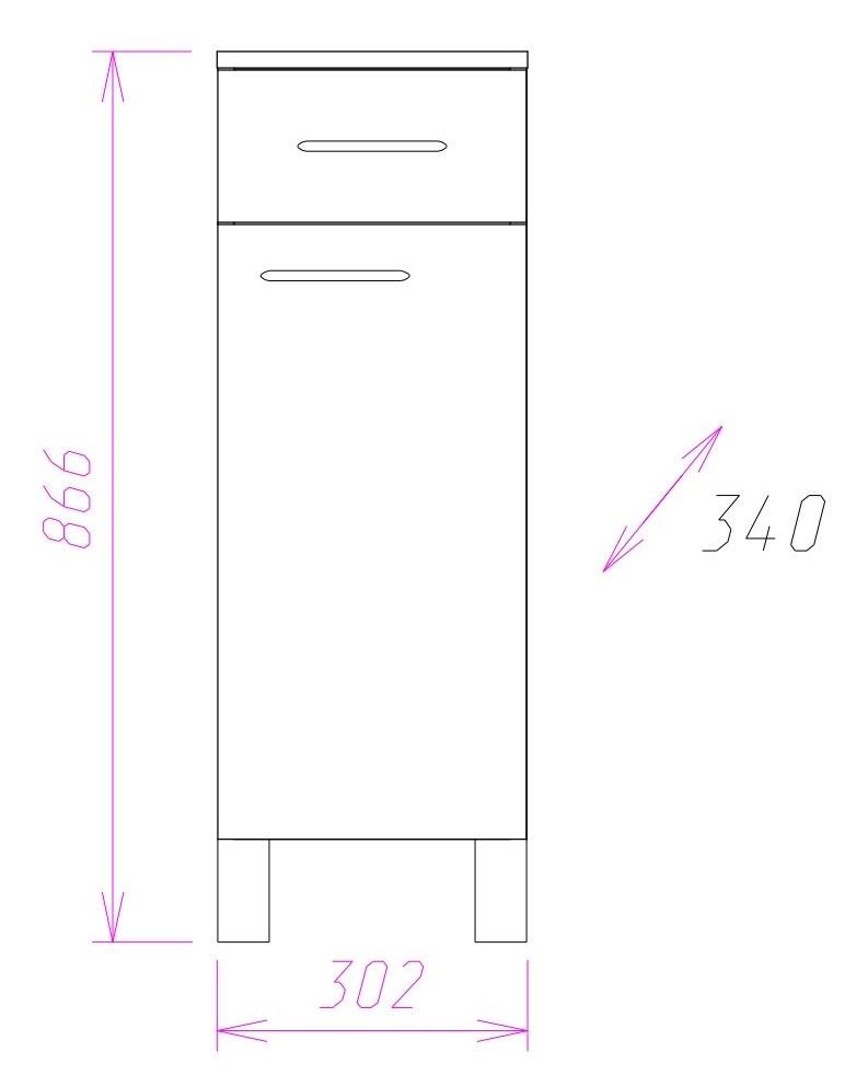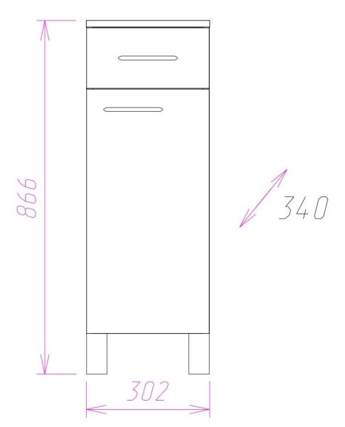 Оптимальная высота пенала позволяет использовать его поверхность как дополнительную столешницу, небольшой удобный ящик с направляющими полного выдвижения подойдет для хранения мелких аксессуаров, а за дверцей скрывается отделение с корзиной для белья. Размер бельевой корзины: 240*230*435.