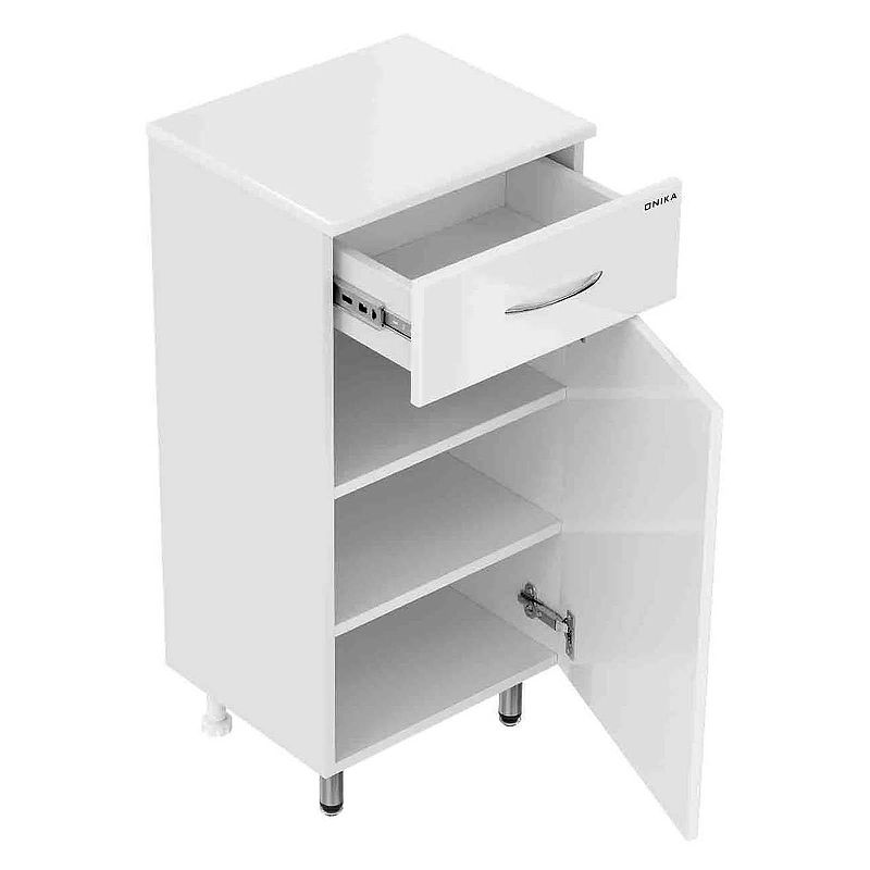 Напольный полупенал для ванной комнаты Onika КАПРИЗ 40, благодаря простому минималистичному дизайну, белой глянцевой поверхности, подойдет под любой интерьер ванной комнаты.