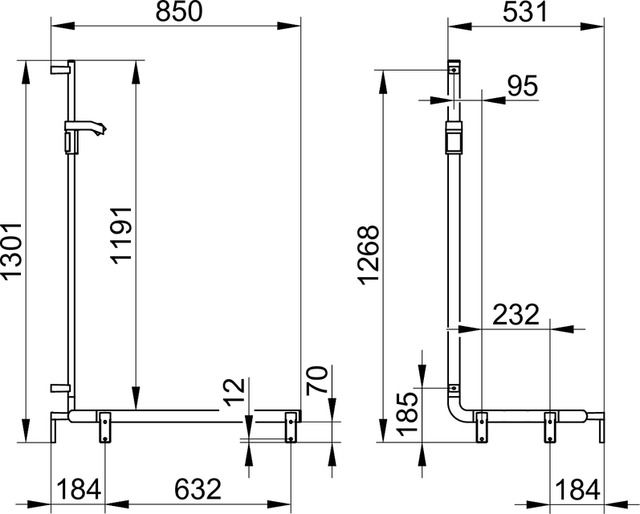 Поручень Keuco AXESS 35008018601 хромKEUCO AXESS Поручень вдоль стены и штанга для душа, правый, 850/531/1301 мм, хром