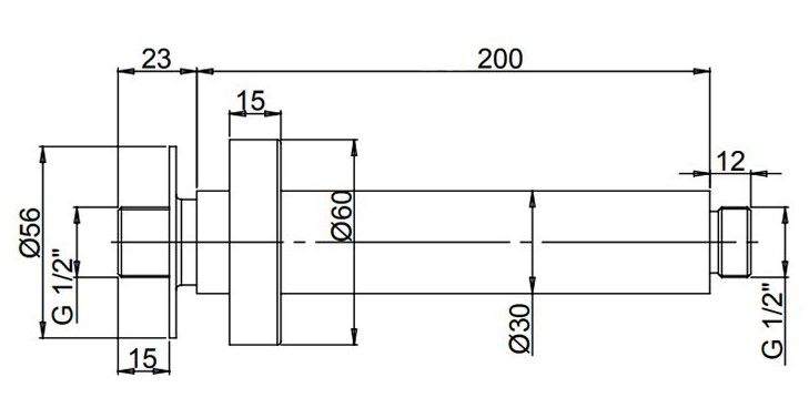 Потолочный держатель для верхнего душа круглой формы обеспечивает надежную фиксацию и комфортное использование. Длина кронштейна 20см, рассеиватель будет расположен практически под потолком, что позволяет расслабиться и насладиться тропическим дождем.
