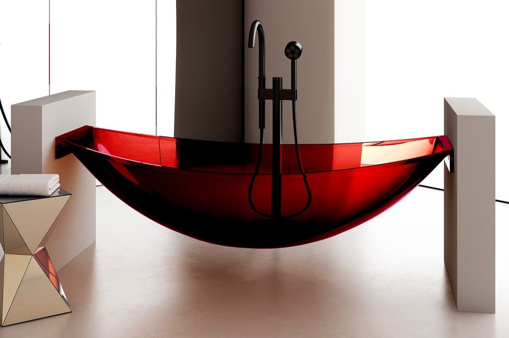 Прозрачная ванна ABBER Kristall AT9704Rubin подвесная 180x80см красный купить