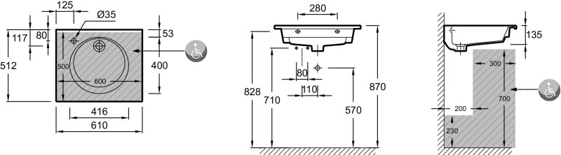 УСТАНОВКА : Подвесные или могут быть установлены вместе с мебелью
