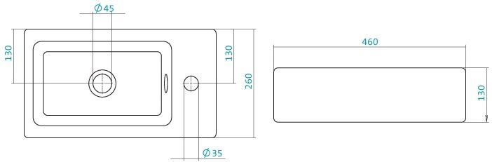 Правосторонняя мини-раковина для установки на мебель с отверстием под смеситель справа